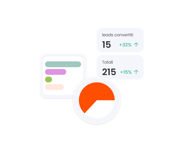 Monitora le performance del tuo business e delle tue strategie di marketing grazie alla dashboard integrata nel CRM. Visualizza grafici e statistiche su acquisizione lead, conversioni, fidelizzazione clienti, fatturato e molto altro. Analizza i dati per identificare i punti di forza e le aree di miglioramento, prendendo decisioni informate e basate su dati concreti.